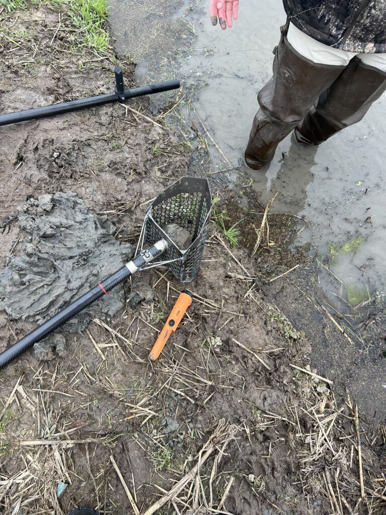 Carefully digging into the mud, I scooped the target using my XTREME Scoop recovery tool.
